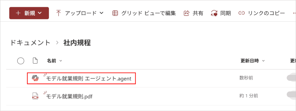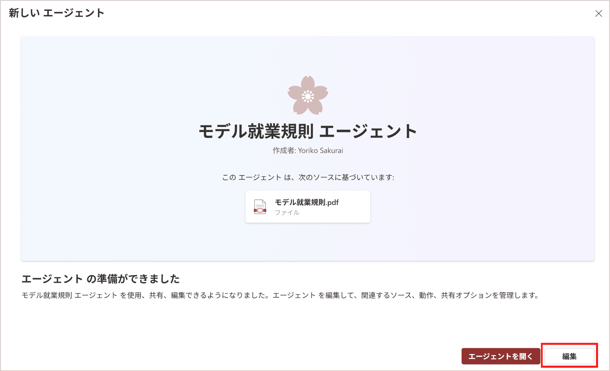3.選択したナレッジ対象と同じ階層にエージェントファイルが作成されます。クリックするとエージェントが開きます。