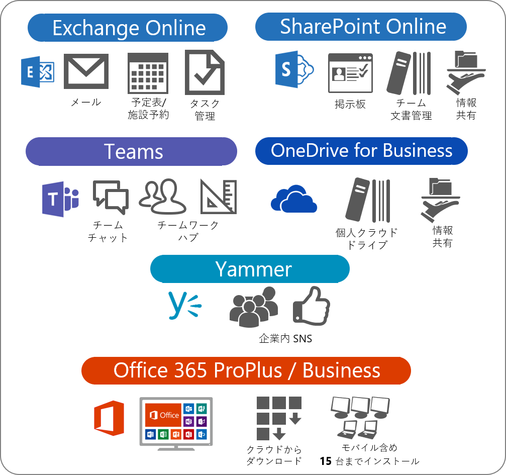 マネージド Microsoft 365 サービスは、マイクロソフトが提供する 電子メール、情報共有グループウェア、文書管理、オンライン会議などをセットにし、TOSYSがサポートするクラウドサービスです。最新バージョンのWord/Excel/PowerPoint ソフトを月額オプションにてご利用可能です。