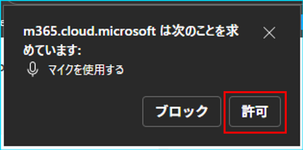 2.マイク利用許可の要求画面が表示されたら、「許可」を押下します。