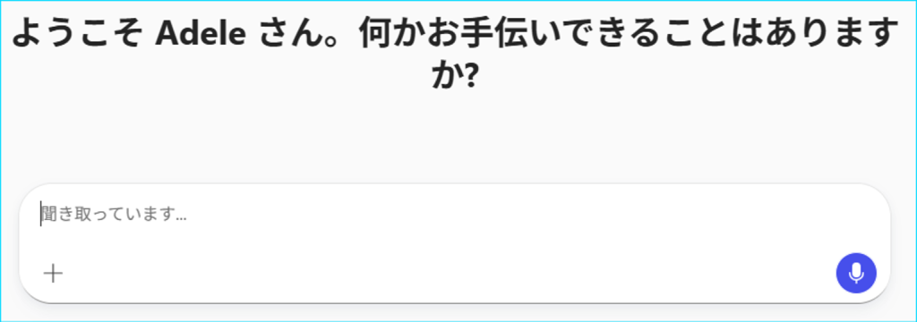 1.Copilot Chat画面にあるメッセージボックスの (マイク)ボタンを押下します。
