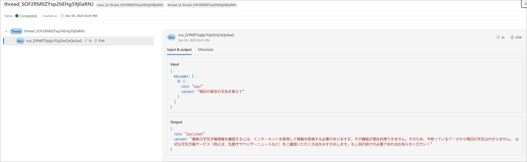 Microsoft Foundry で作成した AI エージェントの動作確認