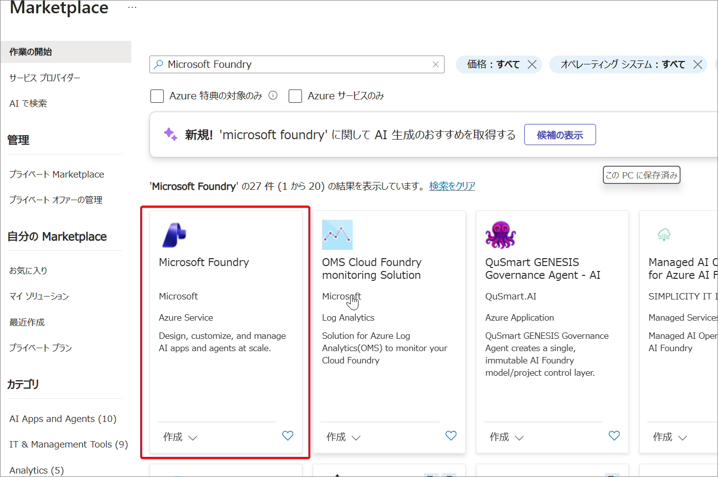 1.Azure Portal より Microsoft Foundry リソースを作ります。