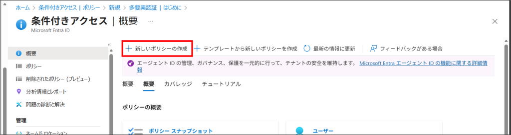 3.「+新しいポリシーの作成」をクリックします。