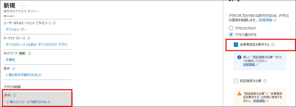 サインインリスク欄と、アクセス欄の設定値をメモします。