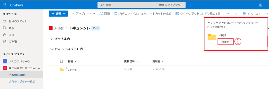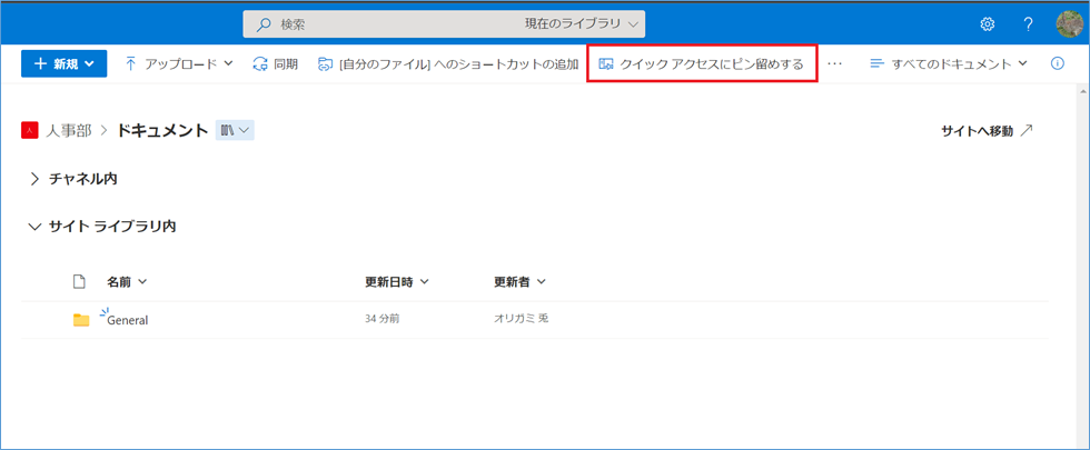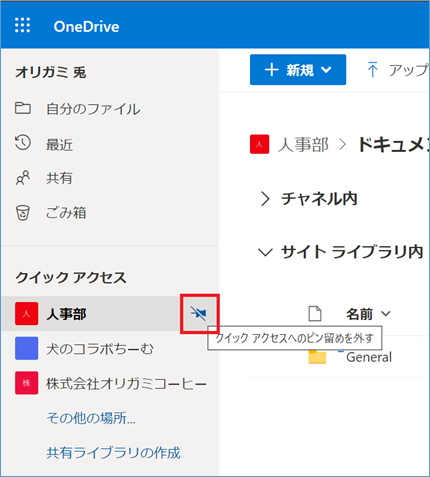 OneDriveでよくアクセスするサイトをクイックアクセスにピン留めする方法をご案内します。