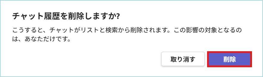 ・削除後、再度会話が開始された場合、過去のやり取りは消えていません。
