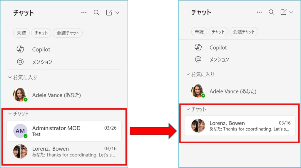 今までのTeamsでは、不要になったチャットについて、非表示とする方法しかありませんでしたが、今回は新たに加わった「チャット一覧から削除する」方法をご案内します。