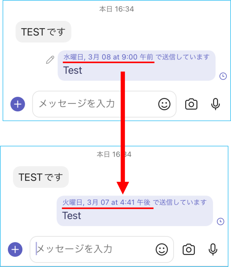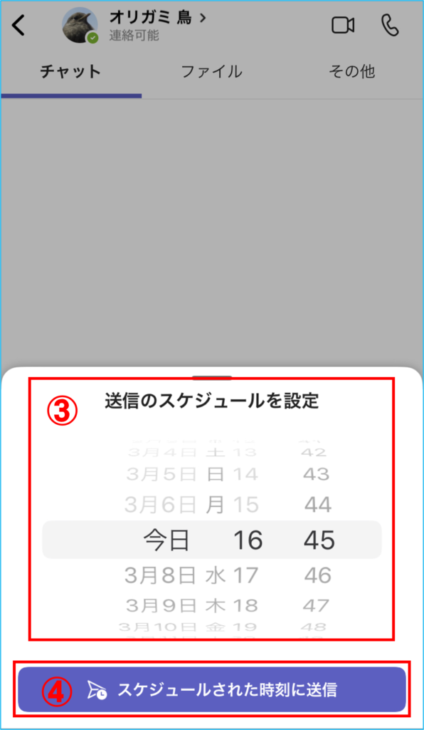 Teamsモバイル版にもようやく日時指定してメッセージを送る機能が追加されました。