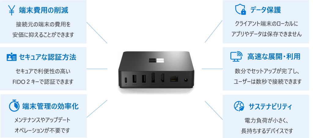Windows 365 Link はWindows 365 専用に開発された初のクラウドPCデバイスで、ローカル環境に