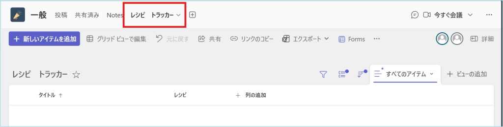 3.チームのタブ欄に「レシピトラッカー」が追加されるようになります。